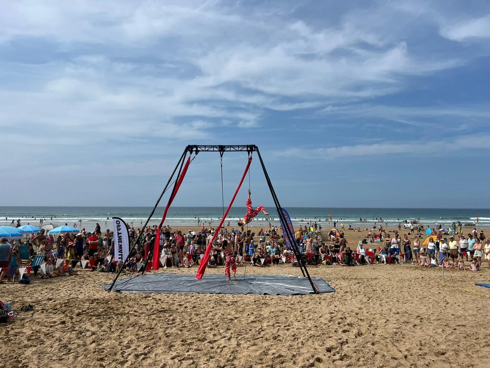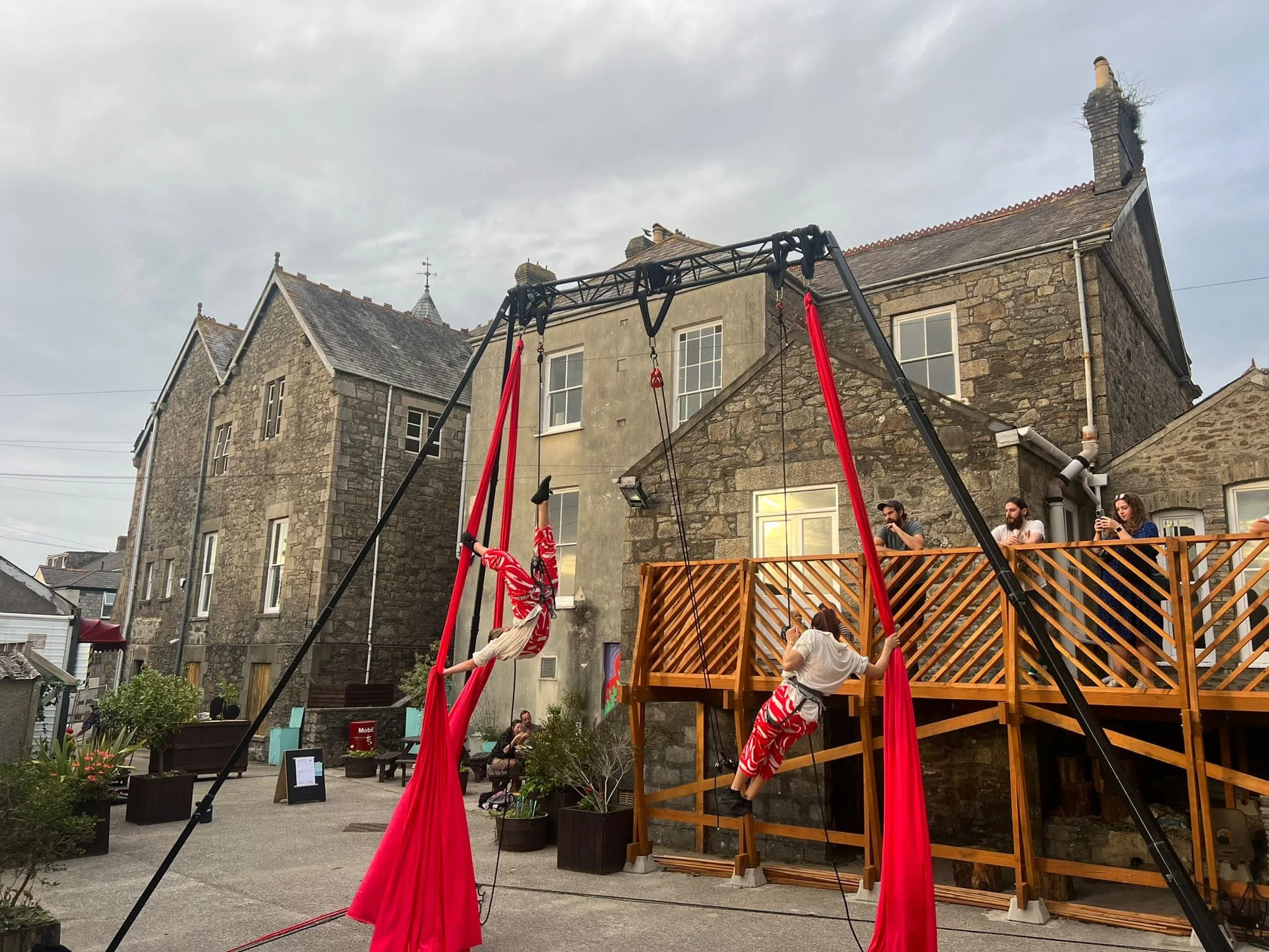 Performed on a portable 6m high aerial rig, this 12 minutes aerial dance, family friendly piece will bring spectacle and joy to any event.