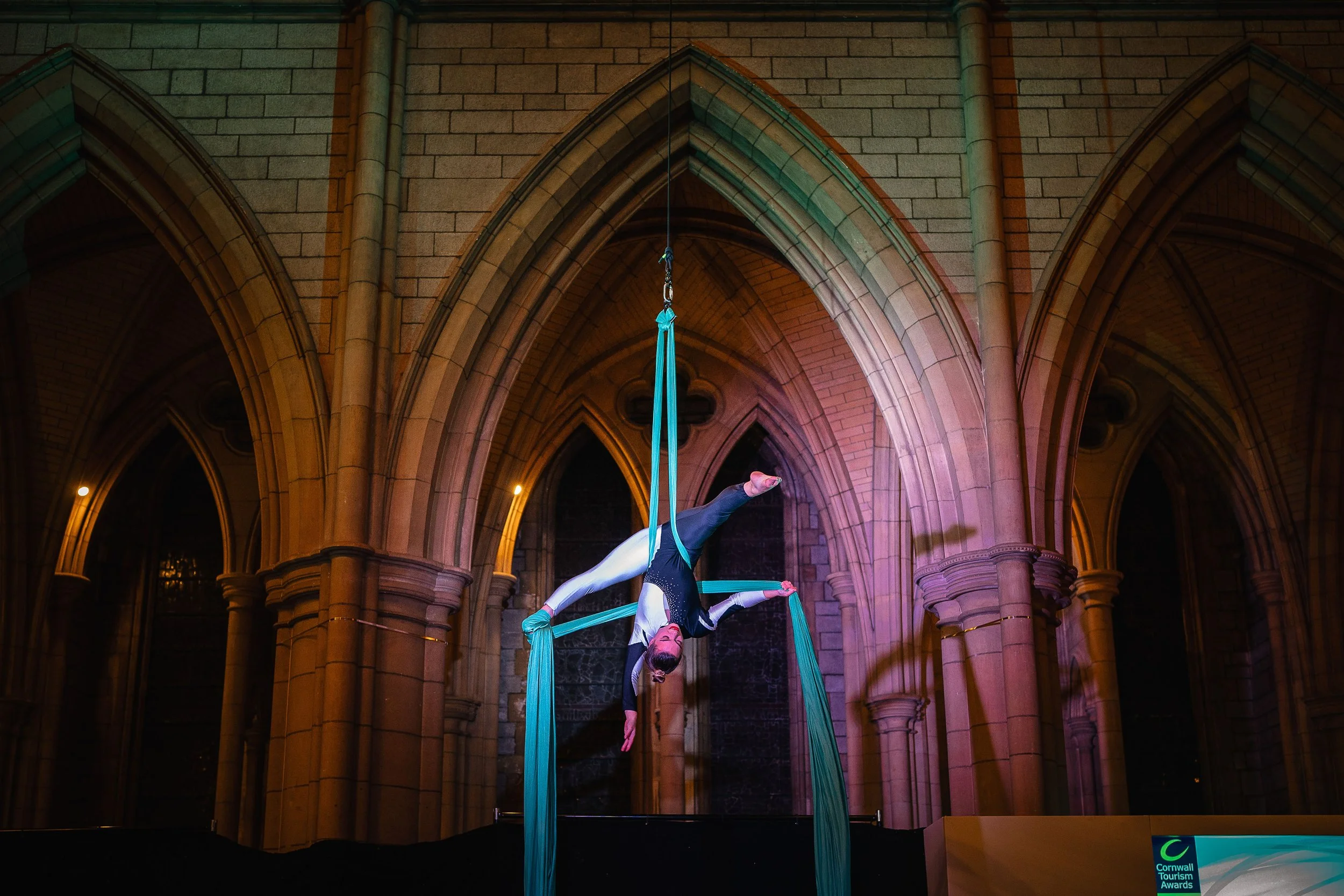 Solo silks performance as an opener for the Cornwall Tourism Awards set in the incredible Truro Cathedral.